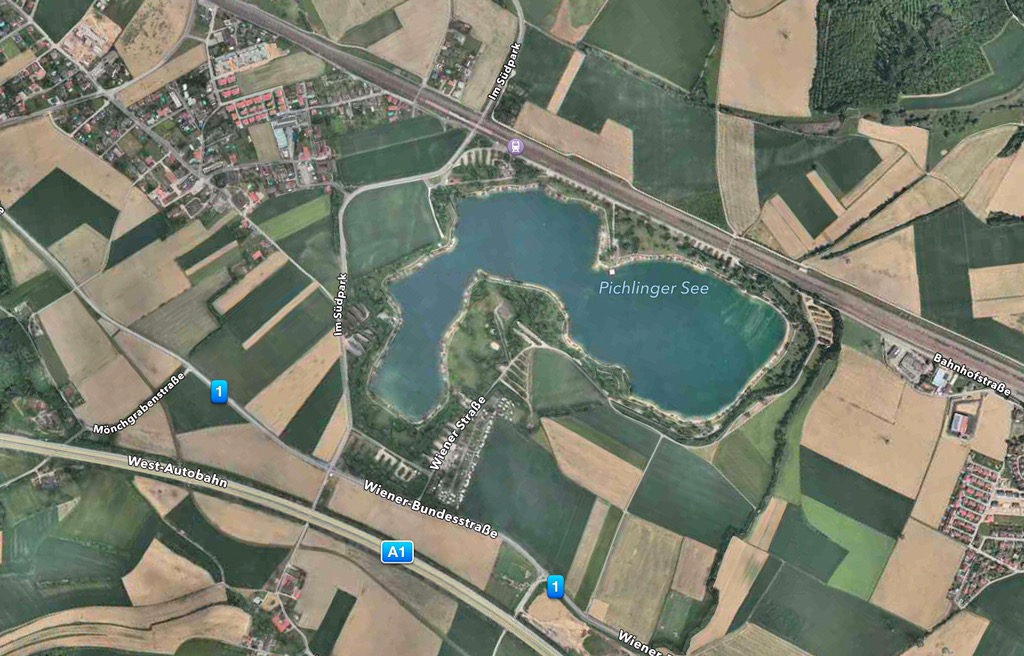 Der Pichlinger See liegt im Osten von Linz, zwischen Westautobahn und Westbahn. (Autobahnabfahrt Asten/St. Florian)