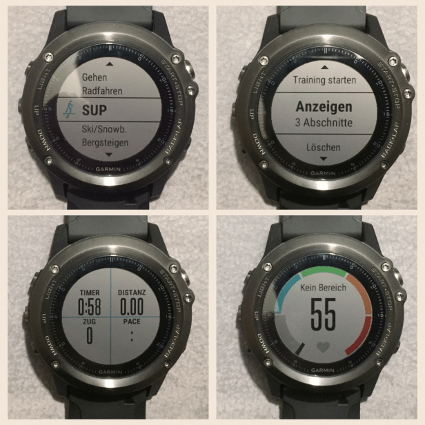 - Als GPS-Sportuhr stehen eine Unzahl an Sportarten zur Auswahl. Wir beschränken uns in diesem Test ausschließlich auf den SUP-Sport und die dafür notwendigen Trainingsfunktionen.