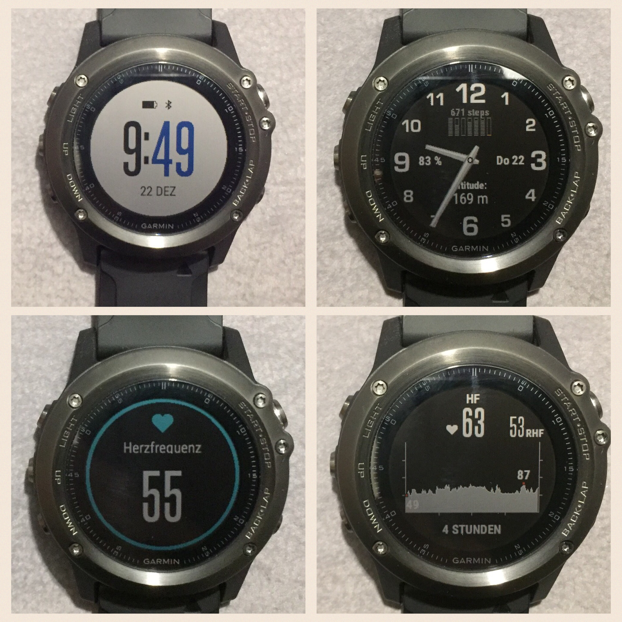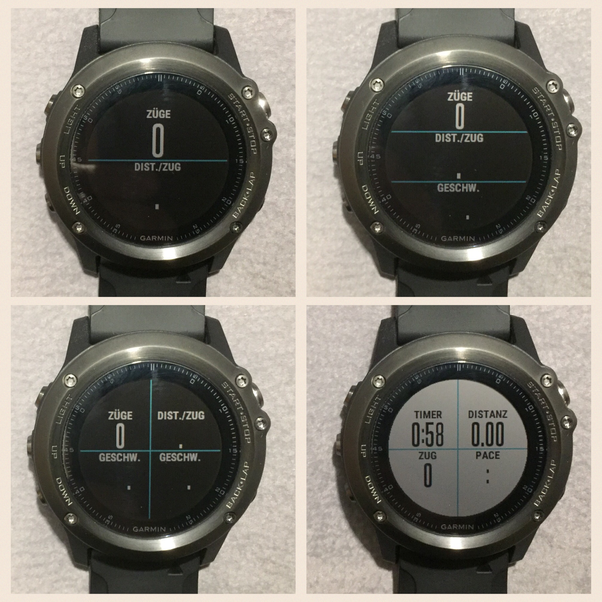 Besonders wichtig für eine Sportuhr ist, dass man sie optimal an die persönlichen Wünsche je nach Sportart anpassen kann. Die Anzeige der fenix 3HR ist sowohl in der Anzahl der Seiten als auch in deren Erscheinungsbild konfigurierbar. Die Umschaltung zwischen den Anzeigeseiten erfolgt dann entweder automatisch oder per Knopfdruck.