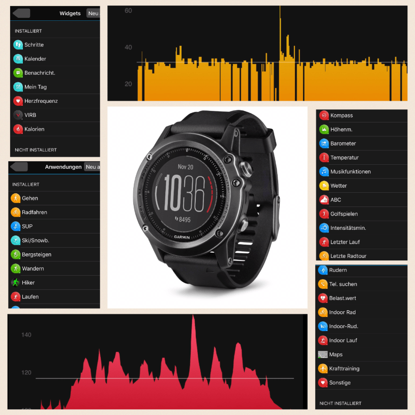 Im Gegensatz zu einigen anderen Garmin-Uhren besitzt die fenix 3HR einen barometrischen Höhenmesser, einen elektronischen Kompass und einen Temperatursensor. Damit sind deutlich mehr Widgets und Apps bereits vorinstalliert. Wer seine GPS-Uhr für die Sportarten Bergsteigen, Ski/Snowboarden, Trail-Run und Golfen einsetzen will, der ist mit der fenix 3HR gut bedient.