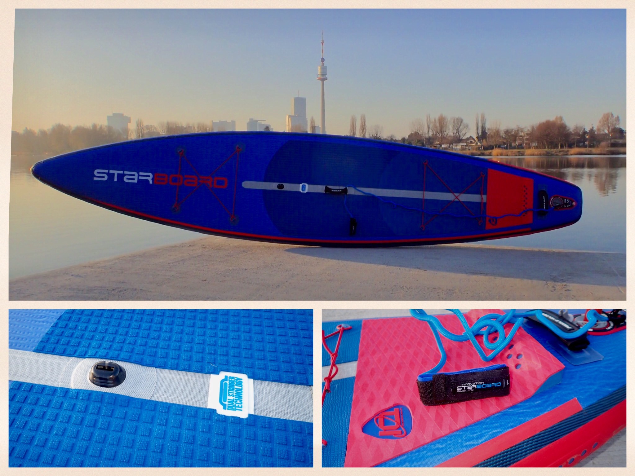 Durch die neue Verarbeitungsmethode werden die einzelnen Schichten nicht mehr verklebt, sondern miteinander verschweißt. Das ergibt bei gleicher Steifigkeit eine starke Gewichtsreduktion von 11,9kg (2016) auf gemessene 9,9kg (2017). Starboard ist von der neuen Produktionsart und Qualität selbst so überzeugt, dass sie die Garantie von ein auf zwei Jahre erhöht haben.