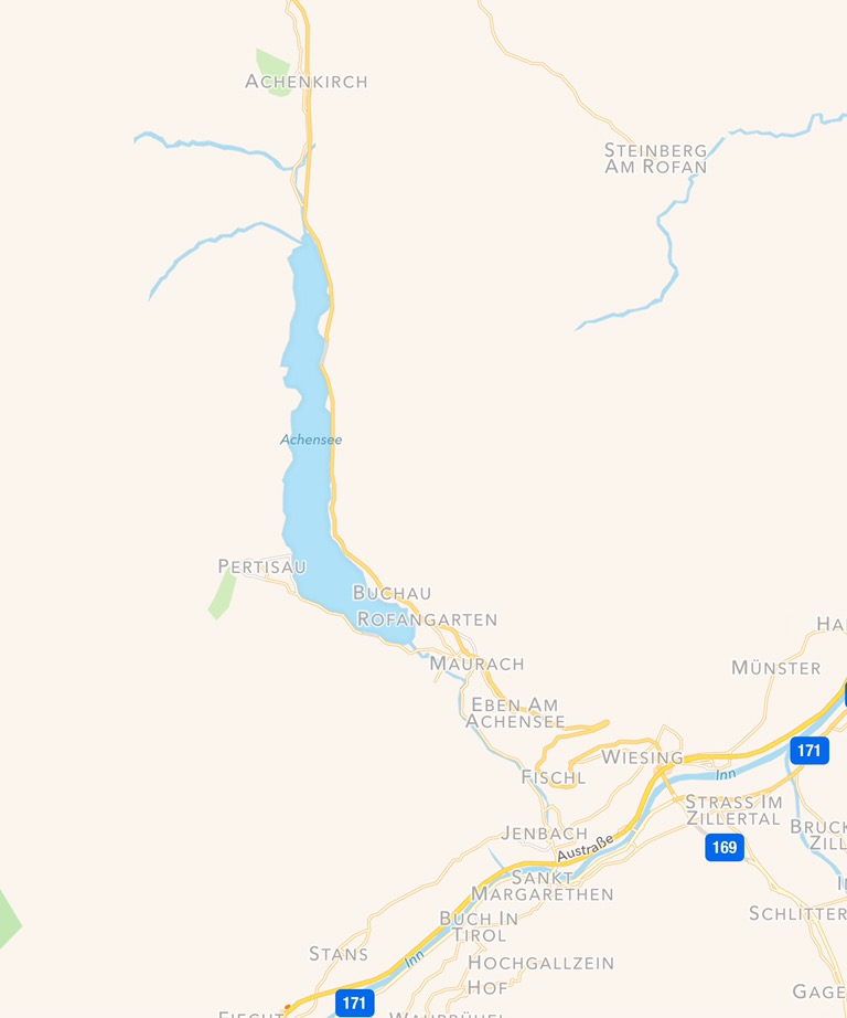 Über die Inntalautobahn A12 gelangt man nach der Ausfahrt Wiesing/Achensee und der Achensee-Bundesstraße B181 nach Maurach. Hier muss man sich entscheiden ob man zur westlichen Seite nach Pertisau oder zur östlichen Richtung Achenkirchen weiterfahren will. Anmerkung: In Österreich gibt es die Mautpflicht auf Autobahnen und speziell auf der A12 eine 100km/h- Beschränkung!