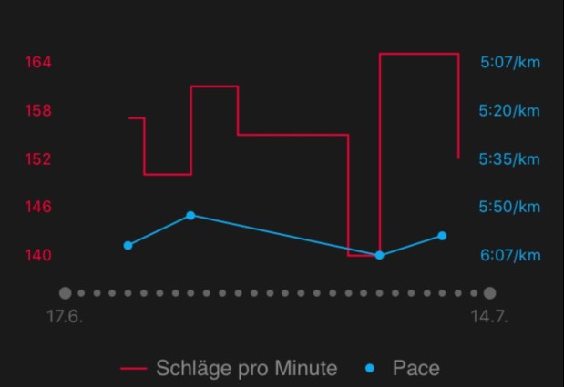 - Laufaktivitäten ohne GPS (mit Trittfrequenz als Geschwindigkeitsschätzung) für mindestens 15 Minuten