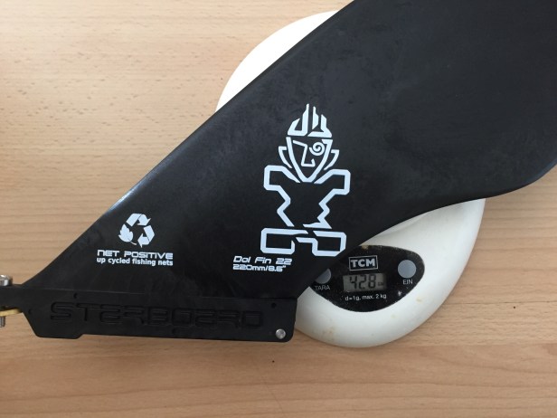 Die Finne ist in der „Injection molded“-Technologie gefertigt und von der Form und Größe eine DOL-FIN 22. Sie bietet viel Stabilität und lässt Seegras einfach weggleiten. Da der Finnenkasten relativ weit hinten befestigt ist, ist der Geradelauf sehr gut. Mit einem Gewicht von 428g ist sie aber deutlich schwerer als die steckbare FCS II Touring SUP Finne der Deluxe–Boards.