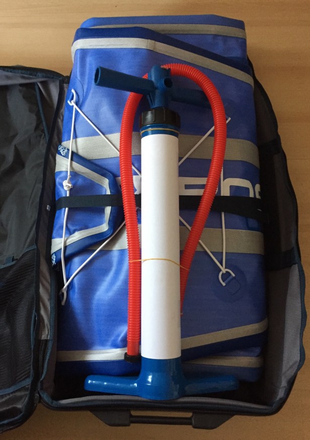 Das Paket beinhaltet das Board in unserer Lieblingslänge von 12’6″ und einer angenehmen Breite von 31″. Die Zenpumpe mit Doppel–Hub–Mechanismus bringt bei jedem Zug und Druck am Anfang viel Luftvolumen, danach wird umgeschalten und das Board kann bis auf 18 PSI gebracht werden.