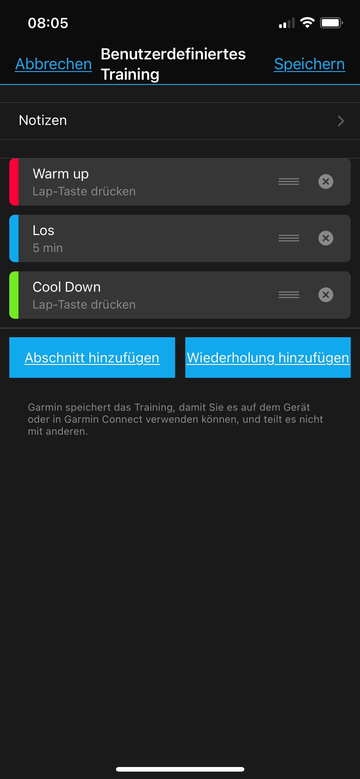 Benutzerdefiniertes Training nur bei fenix