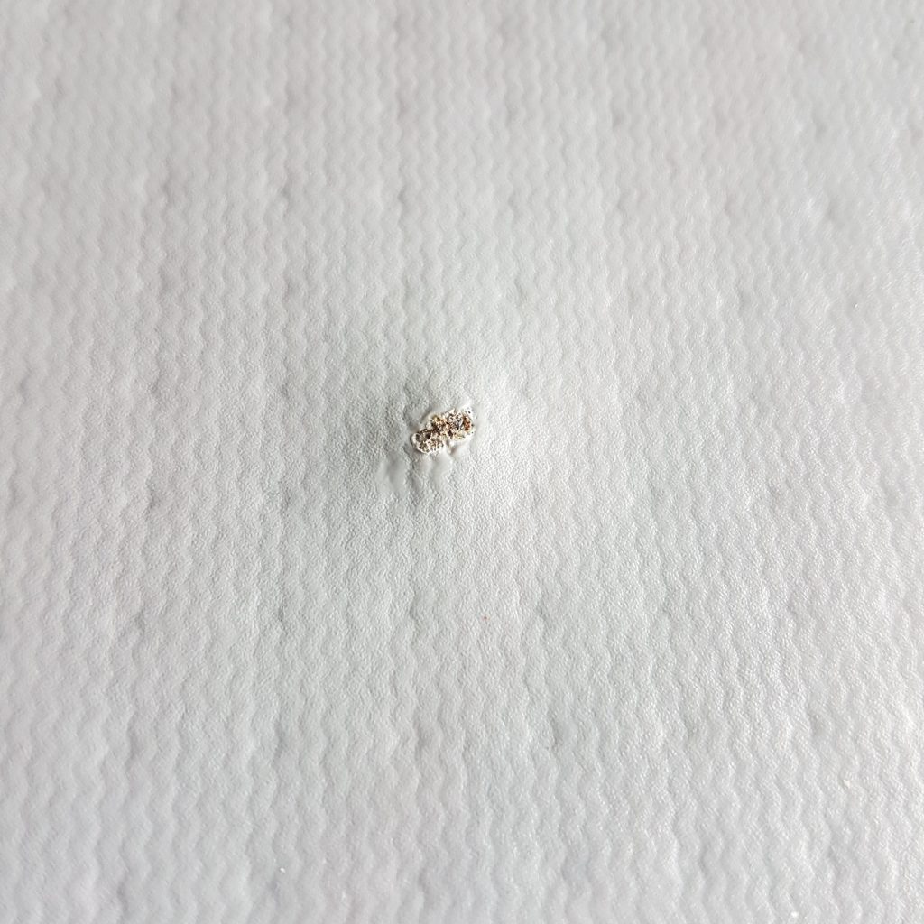 Wie das Loch entstanden ist, ist uns völlig unklar. Es dürfte aber durch Funkenflug ein Minibrandloch entstanden sein.