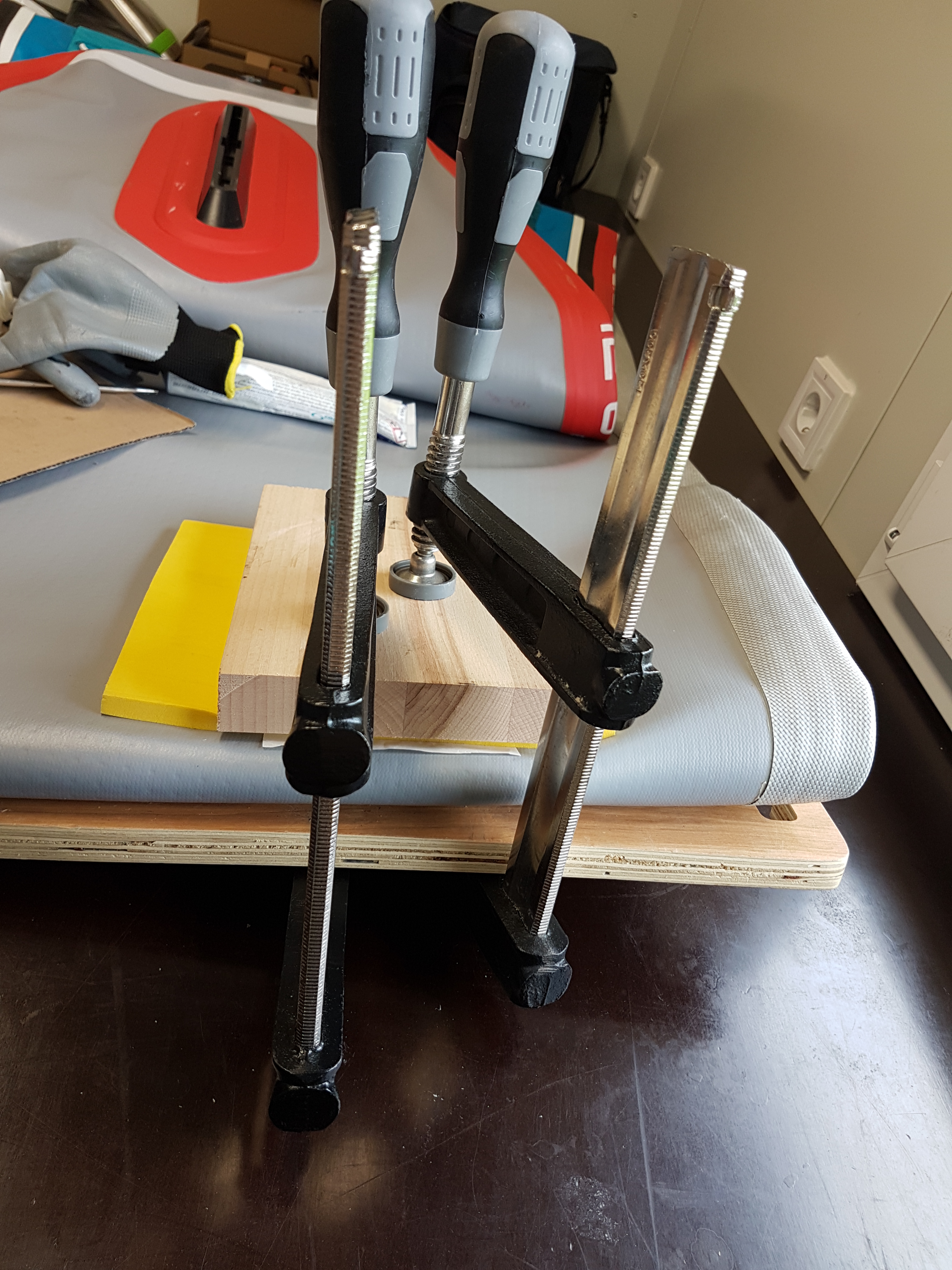 Bei vielen Boards sind Tuben mit Kleber dabei. Bis man sie das erste Mal benötigt, sind sie alt und haben ihre Konsistenz und Eigenschaften verändert. Daher packt Starboard, auch aus Umweltschutzgründen, in den letzten Jahren gar keinen Kleber mehr bei.