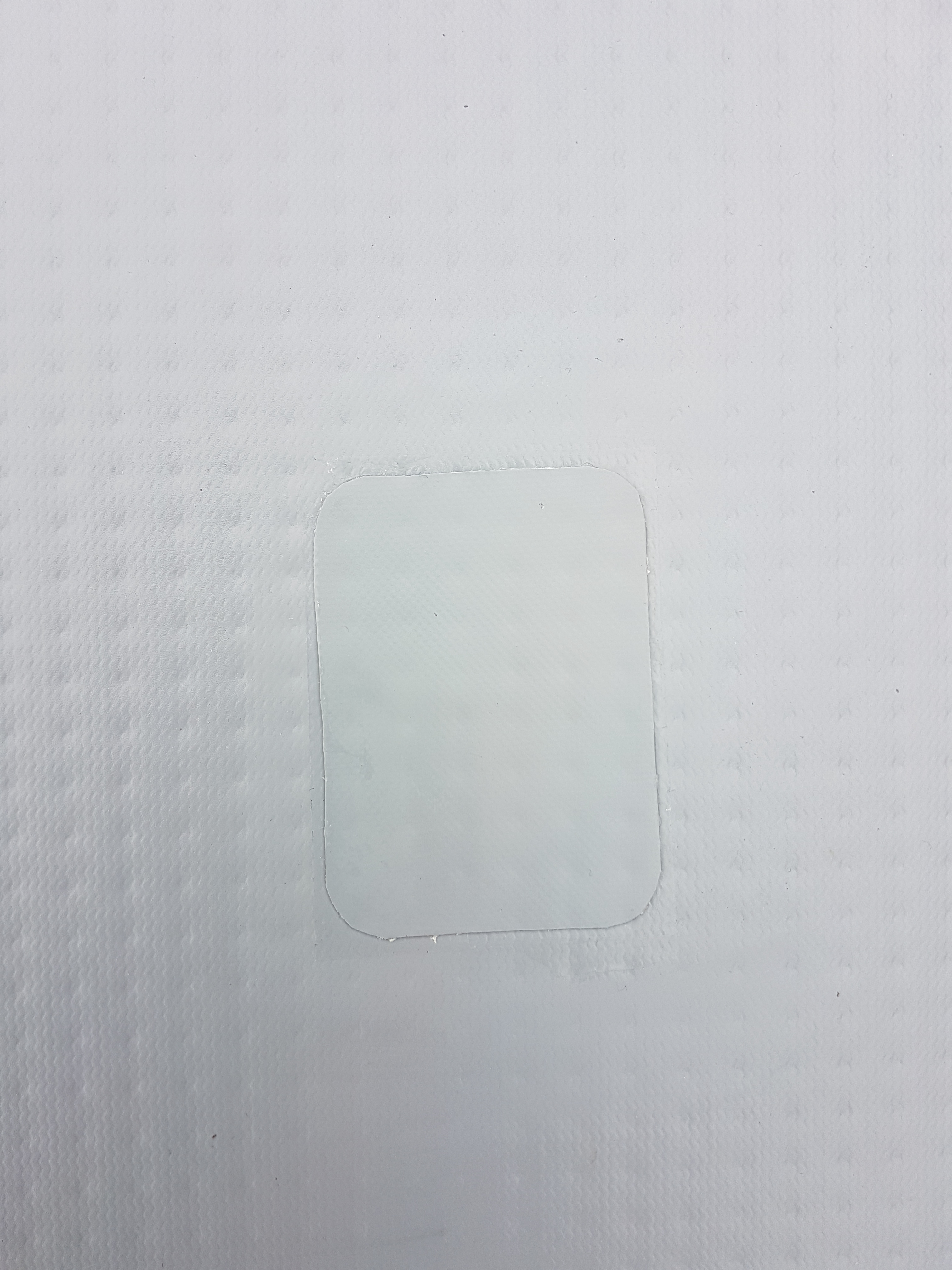 Beim Zuschneiden des Klebepads ist unbedingt auf die abgerundeten Ecken zu achten. Danach muss die Stelle, wo das Ersatzstück später hingeklebt wird, entfettet werden.